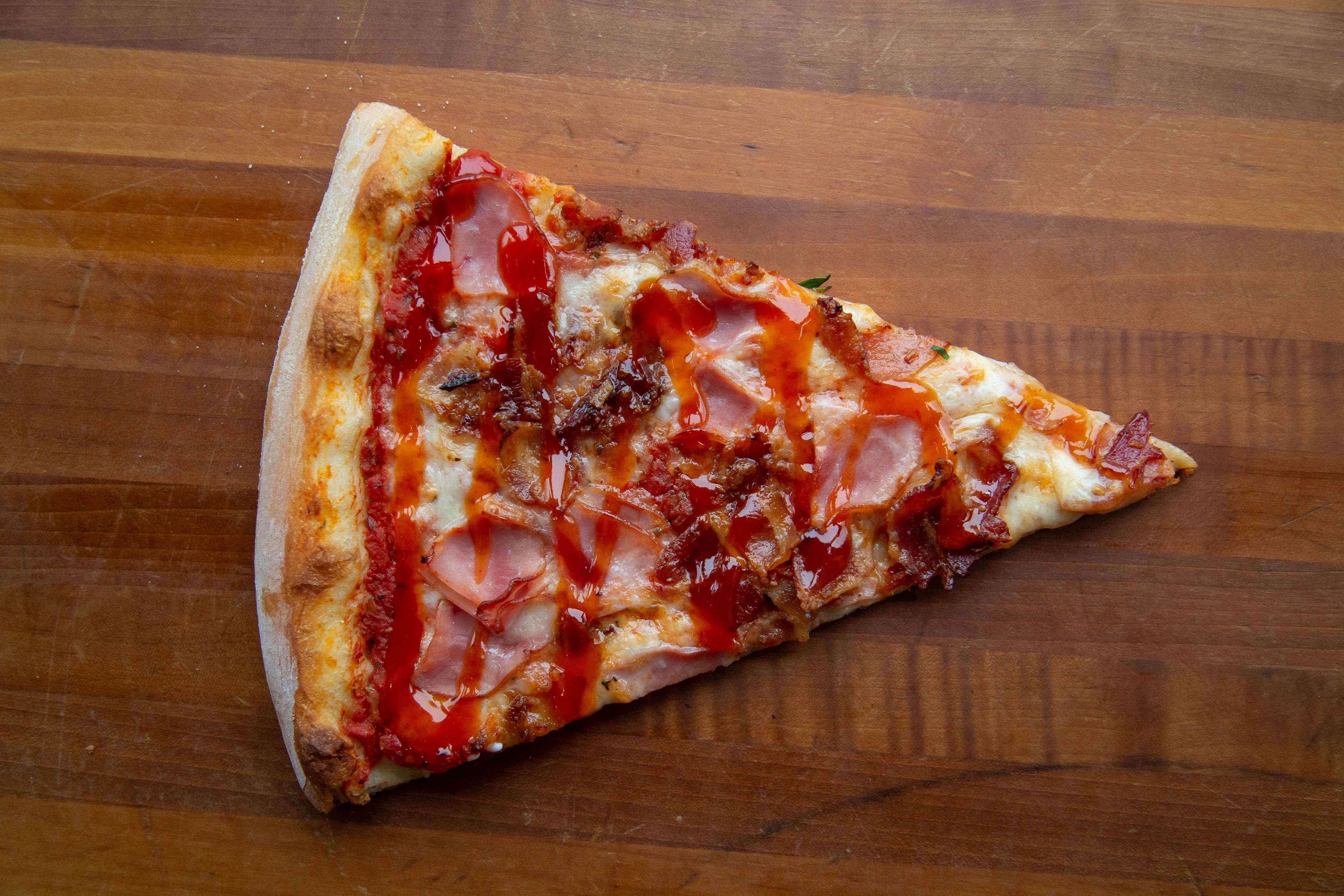 Bacon Me Crazy Slice Our tomato sauce,applewood and Canadian bacon,DC mambo sauce drizzle.