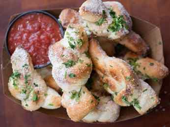 Savory Roasted Garlic Knots Served with homemade marinara.