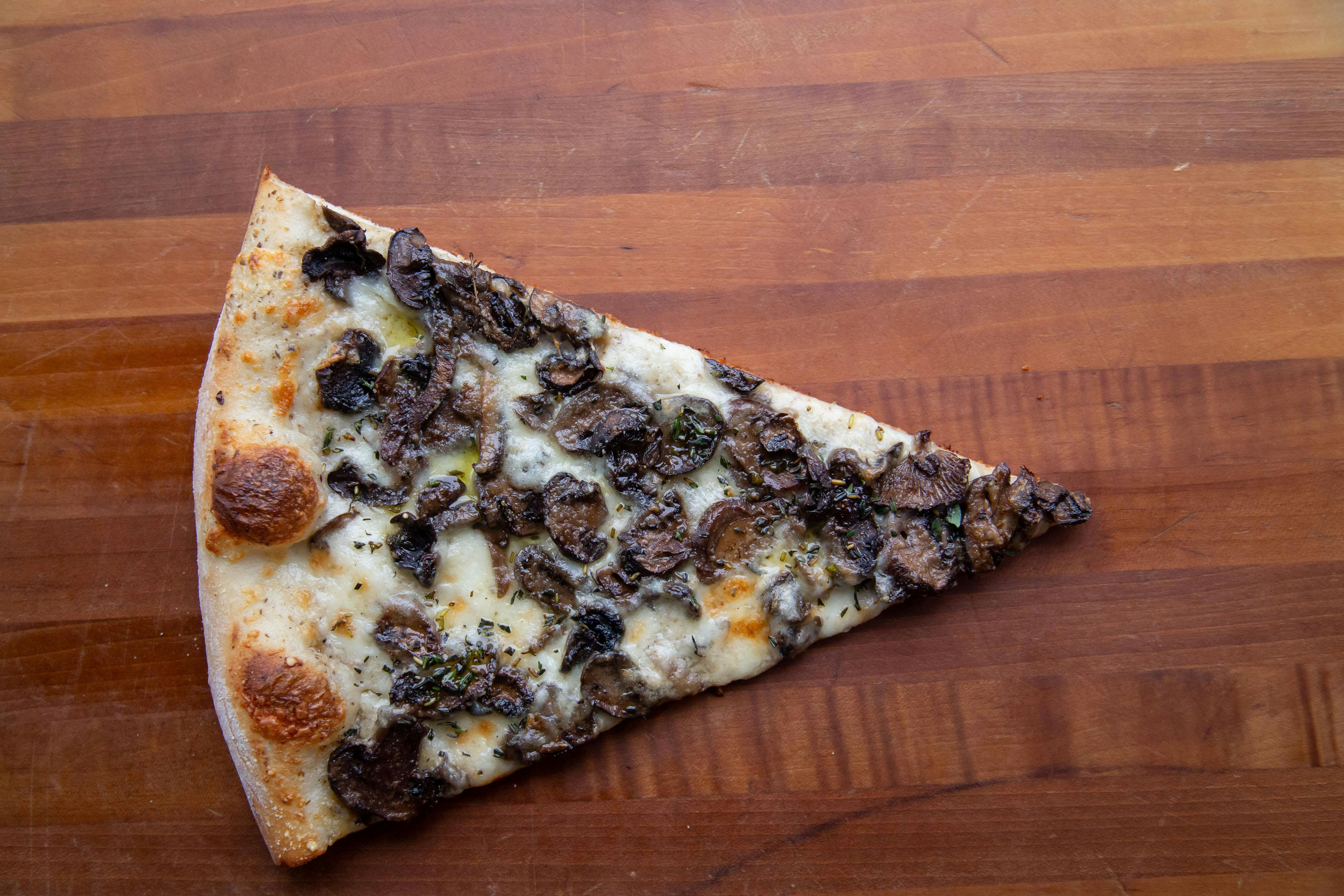 Forest Shroomin? Slice Hand tossed,mushrooms sauce,mozzarella,Parmesan,mushrooms and truffle oil.
