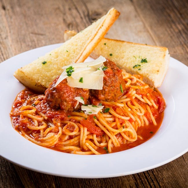 Spaghetti & Meatballs (1410 cal) Traditional Spaghetti with marinara sauce served with homemade meatballs from the family recipe, topped with shaved Asiago cheese & fresh parsley