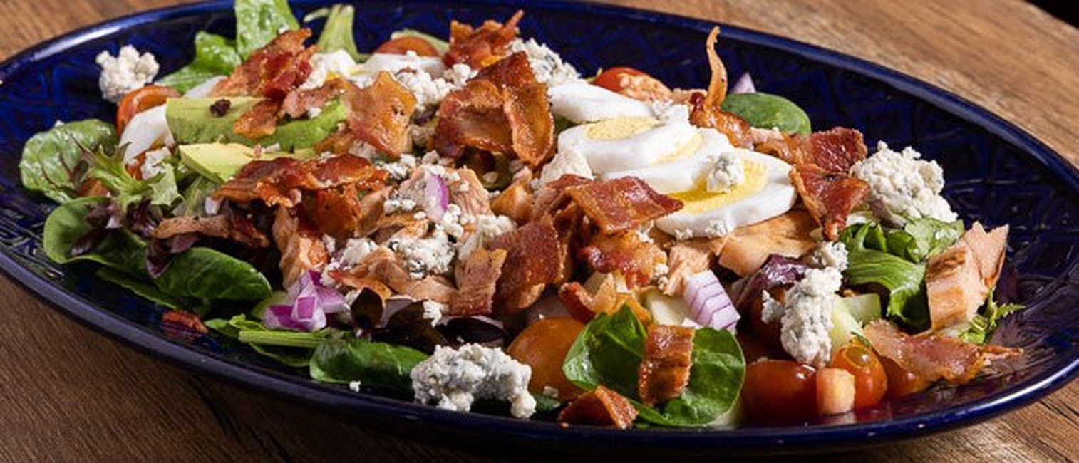 - ALGONQUIN COBBFresh seasonal salad greens with tomatoes, cucumbers, onions, avocados, egg, blue cheese, and Applewood smoked bacon and grilled chicken tossed in your favorite dressing$22.50