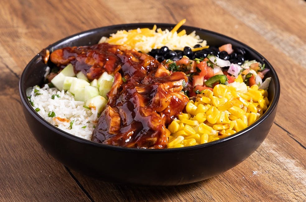 - CHICKEN BURRITO BOWLCilantro lime rice topped with shredded lettuce, black beans, roasted corn, pico de Gallo and cheese with a side of chipotle ranch.$22.50