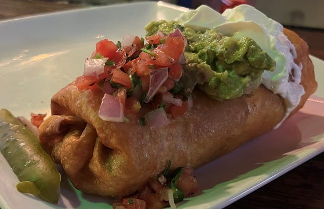 - ChimichangaSteak, Chicken, Pulled Pork, or Veggie lettuce, pico de gallo, cheese, rice, beans, and sour cream wrapped in a flour tortilla. Served with fries$21.25