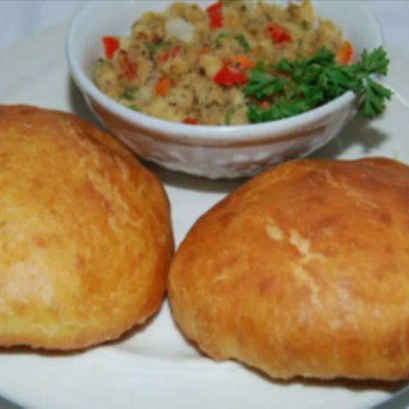 Vegetable patty filled with corn, carrots and green peas baked in a pastry dough.