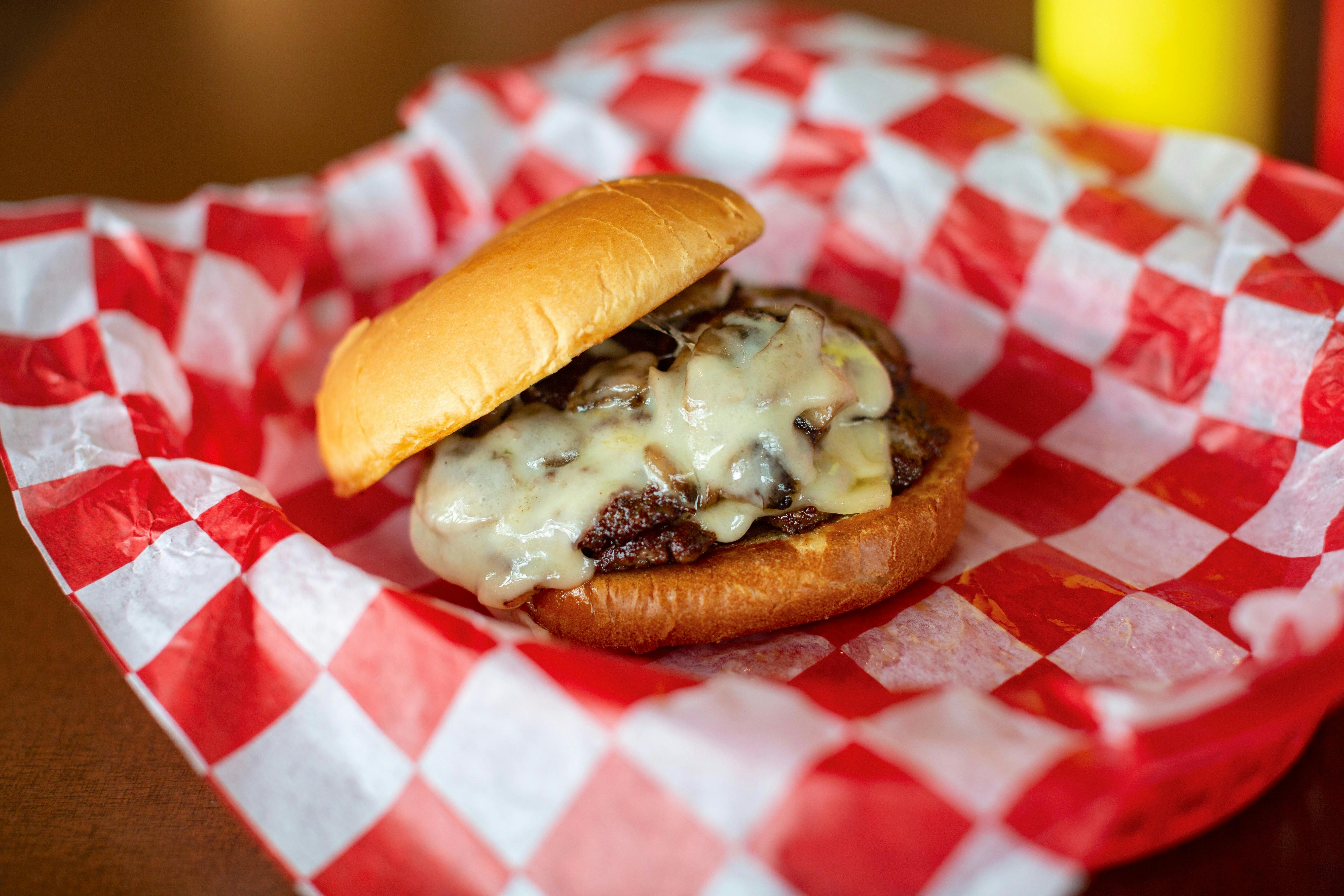 Mushroom and Swiss Burger Topped with sauteed mushrooms and Swiss.