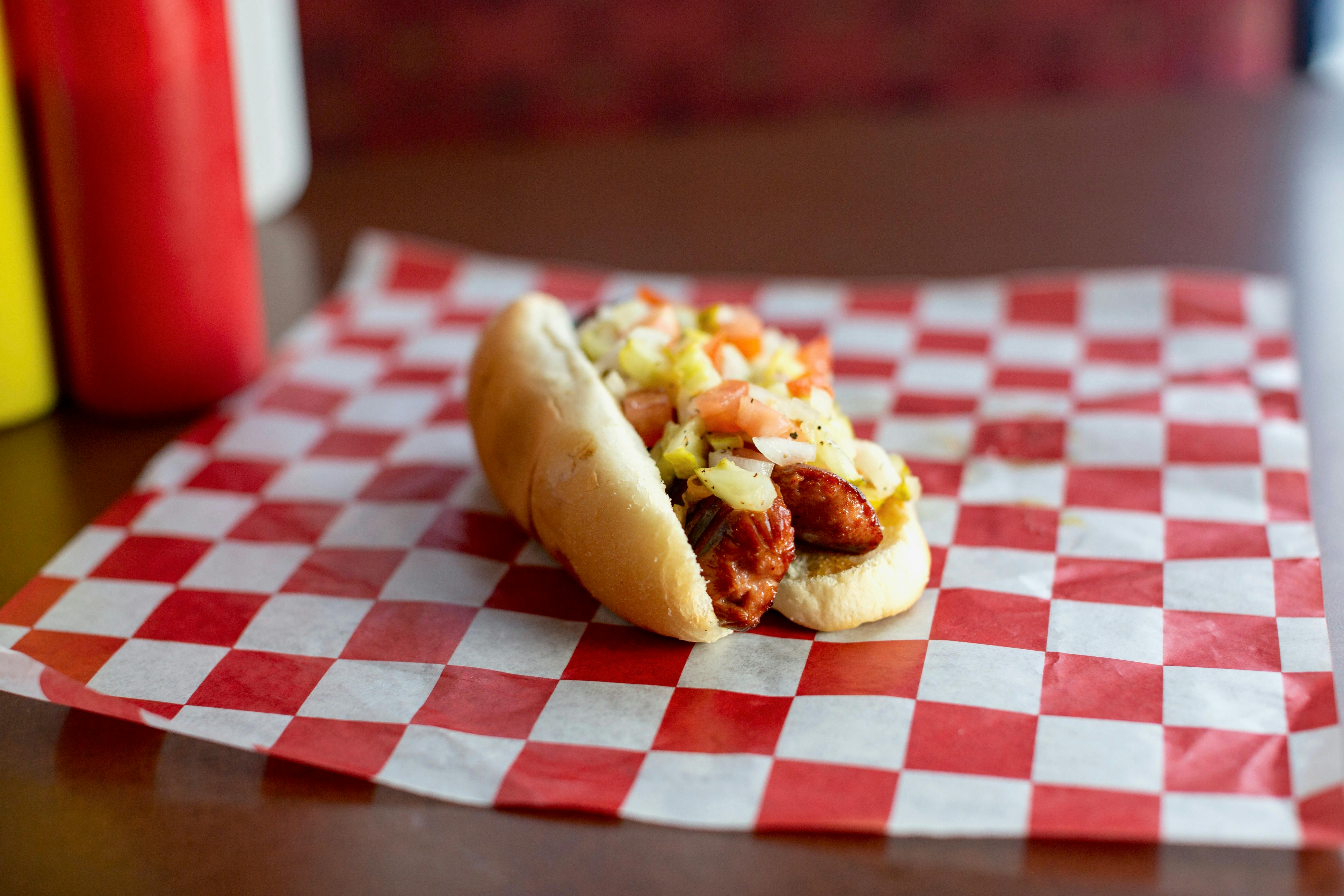 Chili Cheese Dog All beef dog topped with homemade chili and cheese.