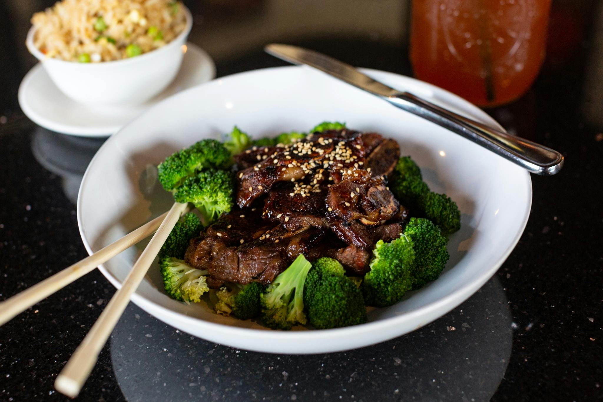 Served with steamed rice. Fried rice, brown rice and Add lo mein additional cost.