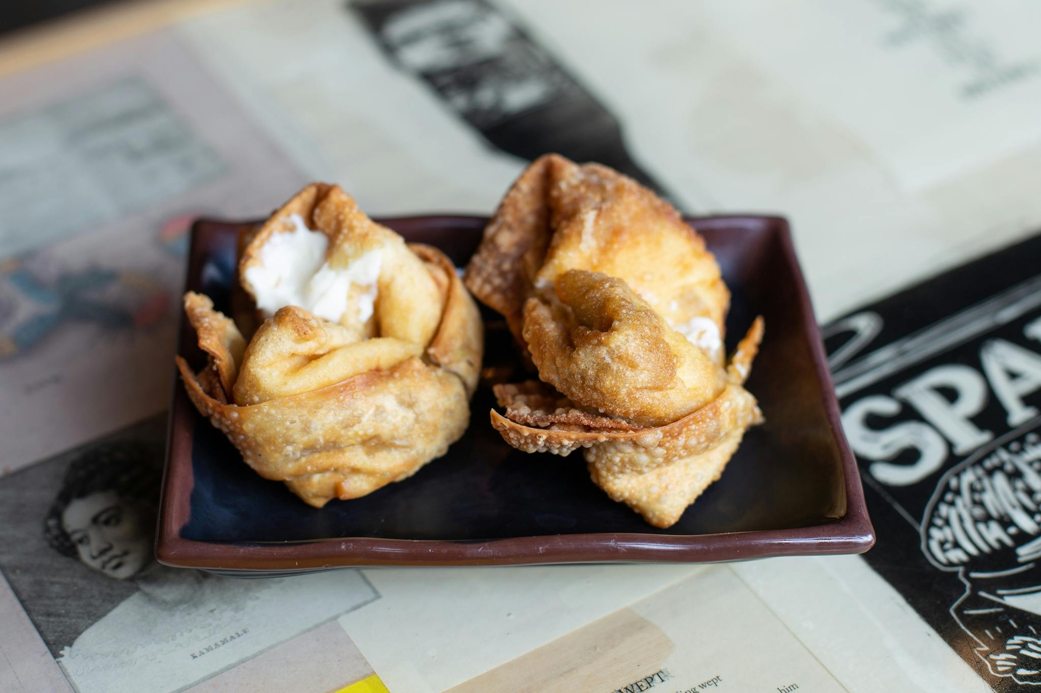 Chicken Wontons 3 fried wontons, filled with a cream cheese and chicken blend. Served with a side of spicy aioli.