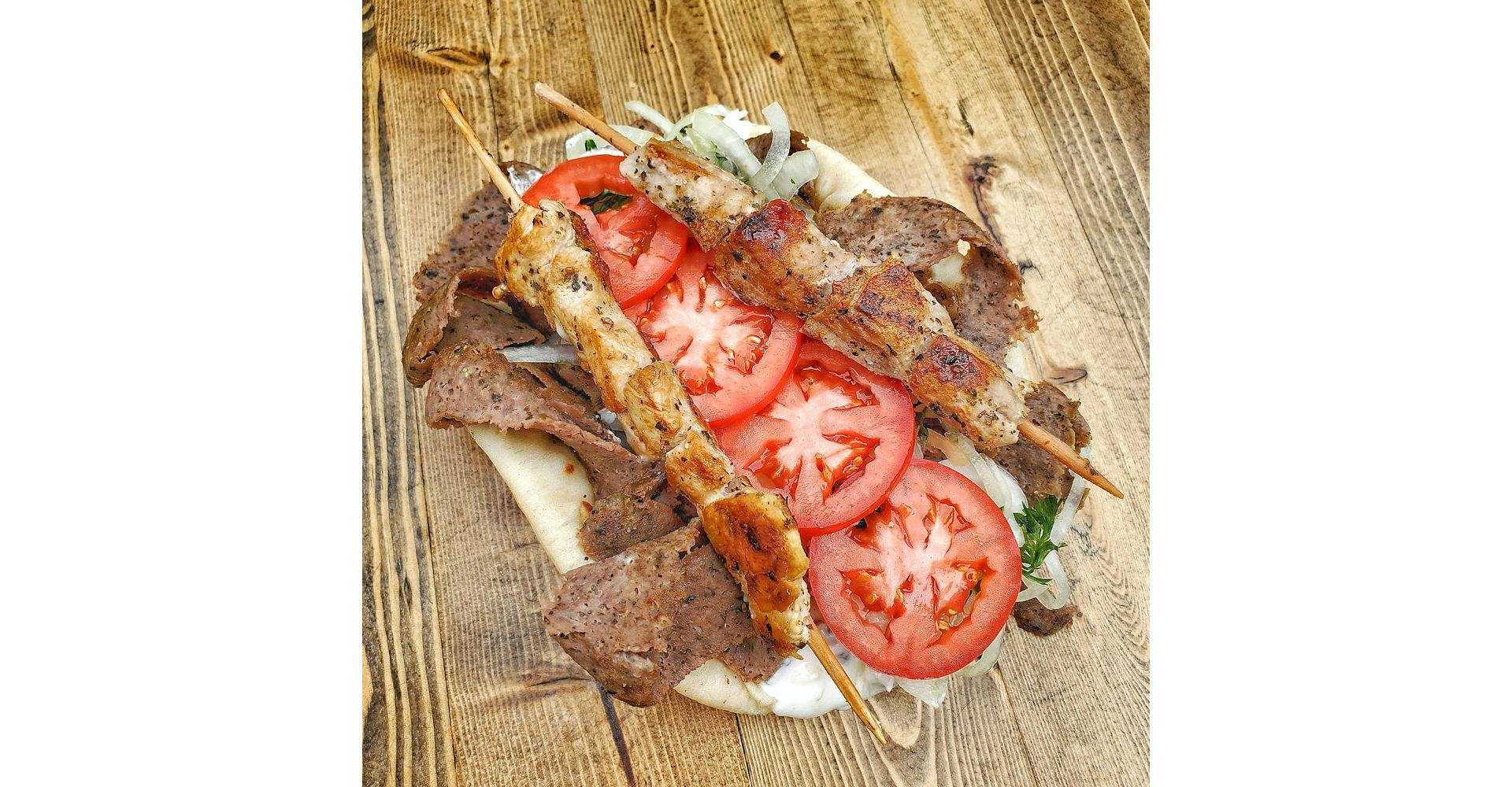 Freaky Greek Big enough for Hercules himself! A Mega Gyro with 2 marinated grilled chicken breast skewers.(GF if ordered without pita) *Note: tzatziki sauce will come on the side to ensure a high quality product.
