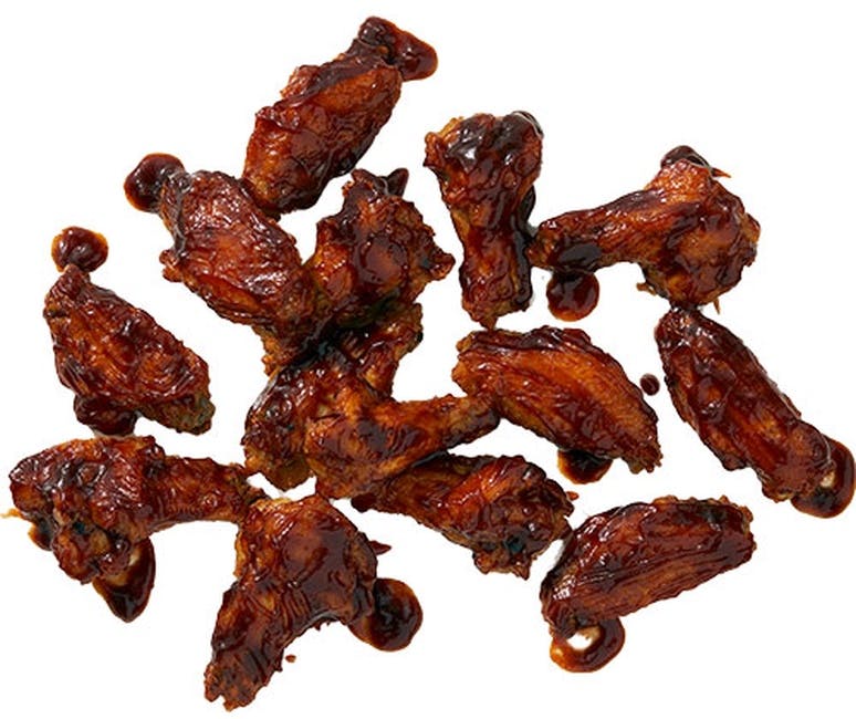 These items are not currently available- Smoky BBQ Boneless WingsOur tender boneless wings; breaded, oven-roasted, and then tossed in smoky BBQ sauce. An amazing combination of sweet and smoky.Add +