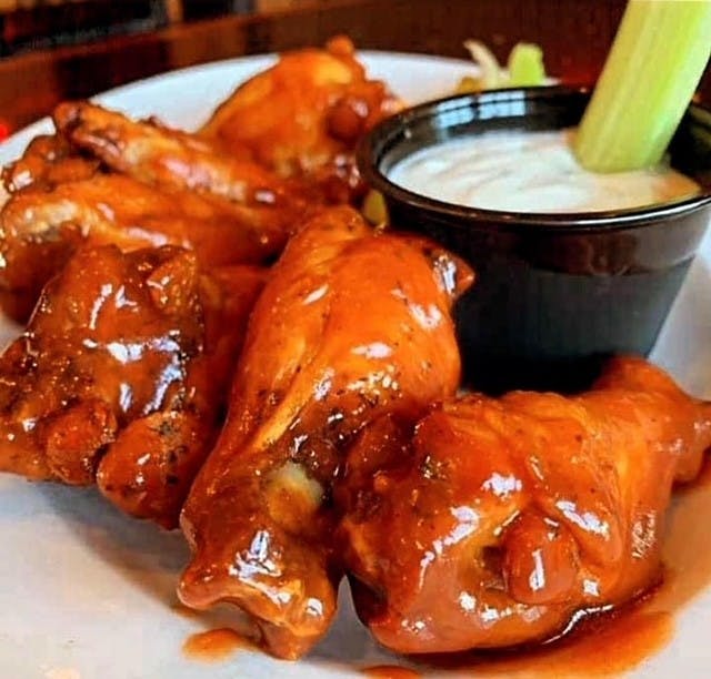 Casa Wings (6) Bone-In Chicken Wings Served with a side of Ranch Dressing or Bleu Cheese, and Celery.