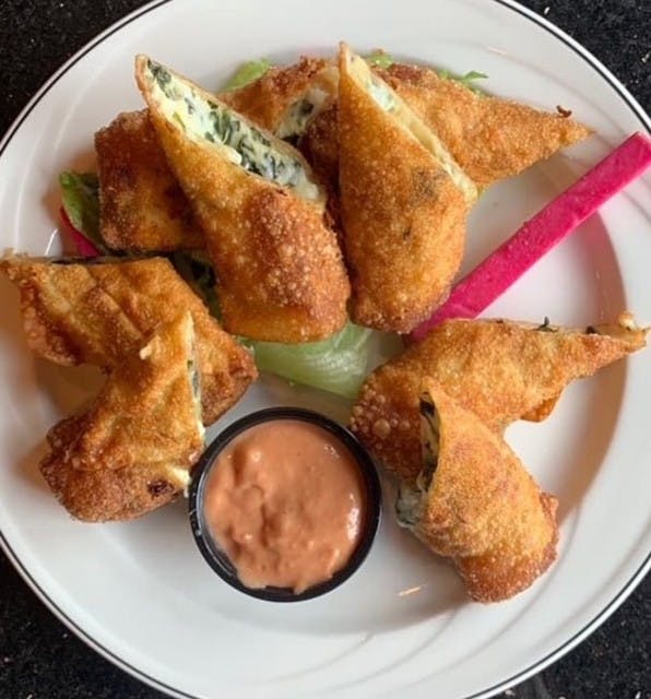 Spicy Jibneh Rolls Spinach, Feta, and Mozzarella Cheese.