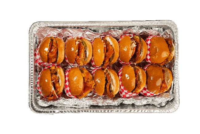 - Spicy Buffalo Chix Tray.Crispy fried chicken breast with Buffalo sauce, Lettuce and Mayo on Brioche bun.$83.99