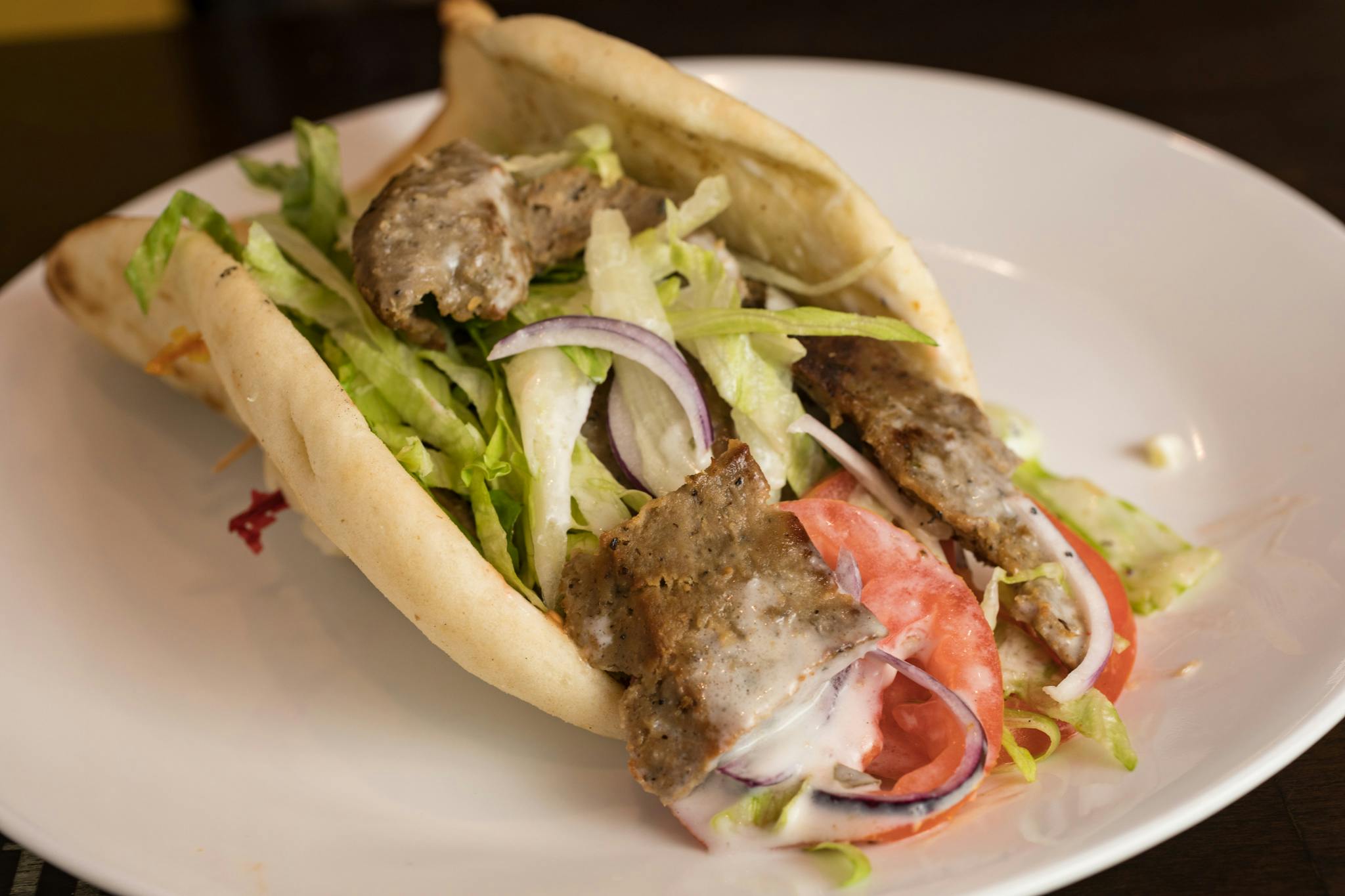 Chicken Gyro Lettuce, tomatoes, onions and tzatziki sauce, hot sauce.