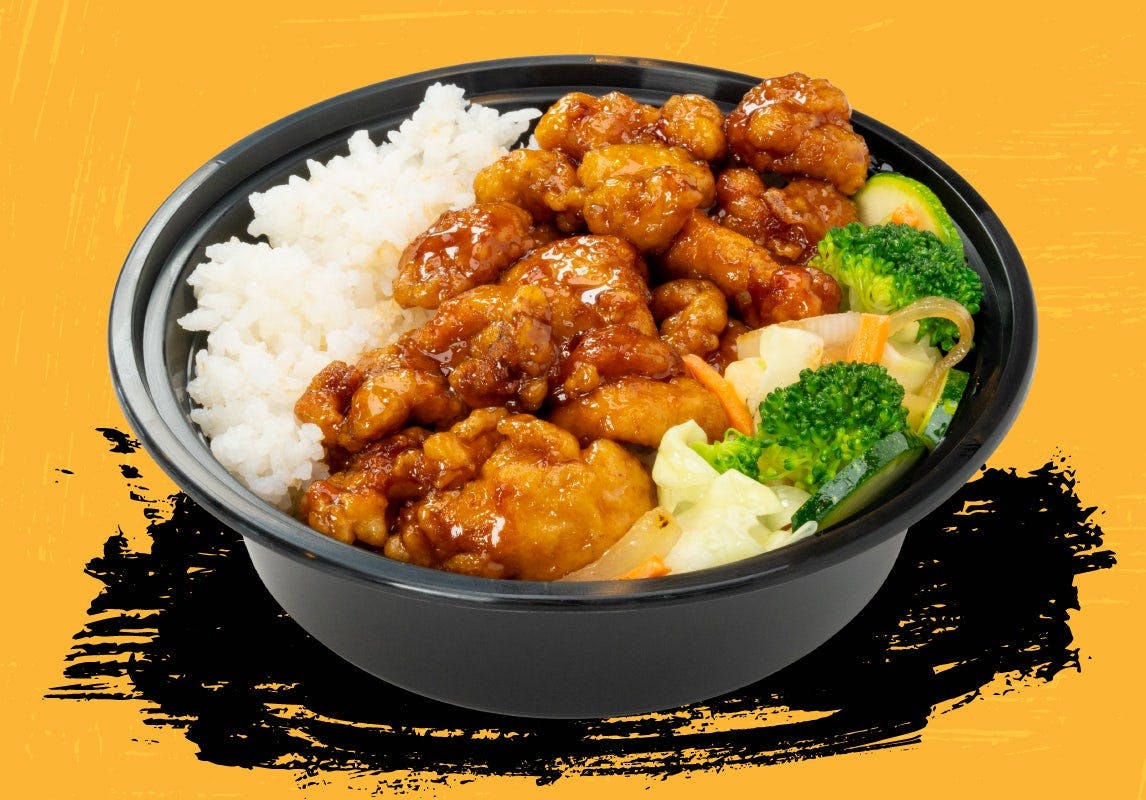 Spicy Orange Chicken Bowl Our delicious, breaded Orange Chicken wok-tossed with a splash of our famous Spicy Sauce! Sweet & Spicy!