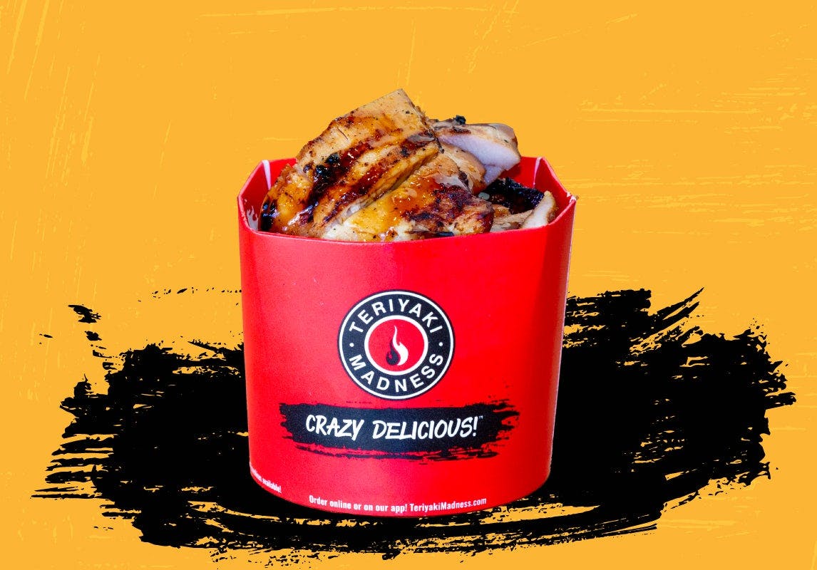 Mad Spicy Chicken Teriyaki Bowl A whole new flavor (and level of heat)! This is not just our famous spicy chicken teriyaki with the volume turned up, this is a whole new bowl! Our fresh chicken teriyaki is first wok-tossed with our signature spicy sauce and then wok-tossed with our signature MAD SAUCE and placed on your choice of white rice, brown rice, fried rice or noodles and includes stir-fry veggies!