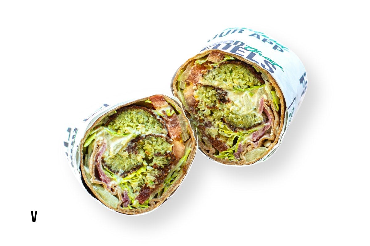 FALAFEL WRAP Lettuce, Falafel, Cucumbers, Pickled Onion, Tomatoes & Hummus