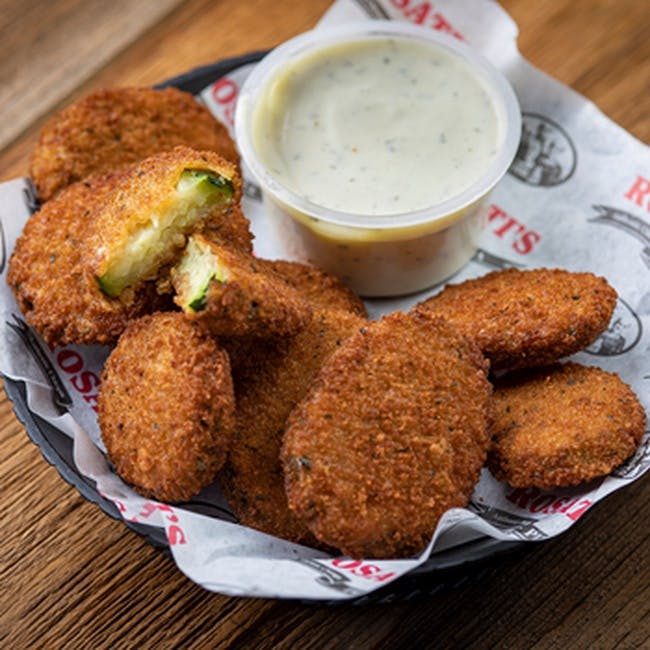 Breaded Zucchini (810 cal) Served with a side of ranch.