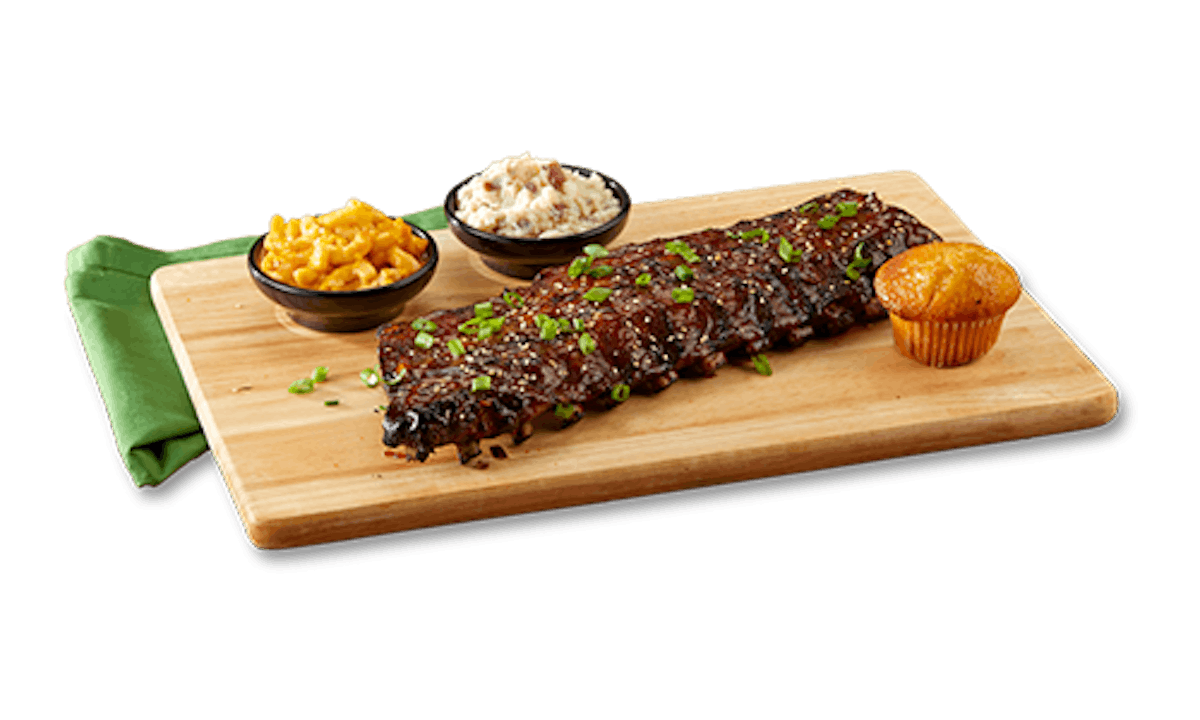 All-American BBQ Feast? A full slab of Ribs, a whole Country-Roasted Chicken, choice of Texas Beef Brisket or Georgia Chopped Pork, Creamy Coleslaw, Famous Fries, Wilbur Beans, Sweet Corn and Corn Bread Muffins. Served family-style for 4-6 people.